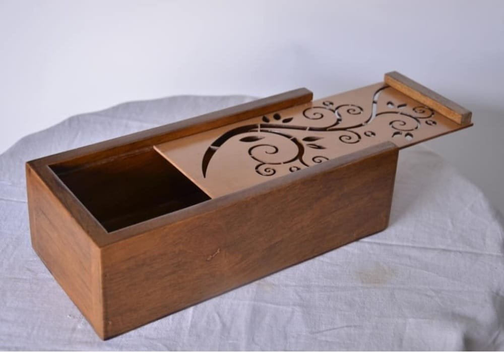 Protect your most cherished accessories in the Botanical Bangle Box, a seamless blend of traditional craftsmanship and modern utility. Featuring an elegantly carved sliding filigree lid and a rich natural wood finish, this box is specifically designed to house your jewelry with the same artisanal grace that defines the entire Harji Daaji collection.