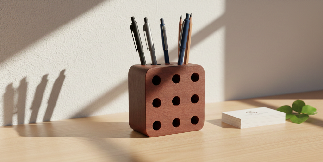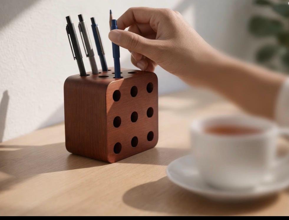 The Harji DaajiβThe Grid Cube is a masterclass in functional minimalism, featuring a precision-drilled 9-hole matrix carved from premium, warm-toned wood. This architectural desk piece keeps your essential writing tools perfectly upright and organized, transforming any workspace into a sanctuary of clean, modern focus.